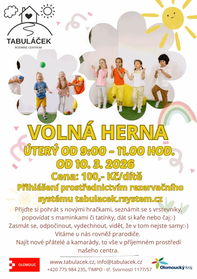V Rodinném centru Tabuláček v Olomouci nabízíme pravidelné kroužky pro děti, workshopy, besedy i přednášky pro rodiče a také jednorázové akce. Najdete u nás aktivity pro rodiny s malými dětmi, prostor pro hraní, tvoření, sdílení a setkávání s dalšími rodiči i dětmi.